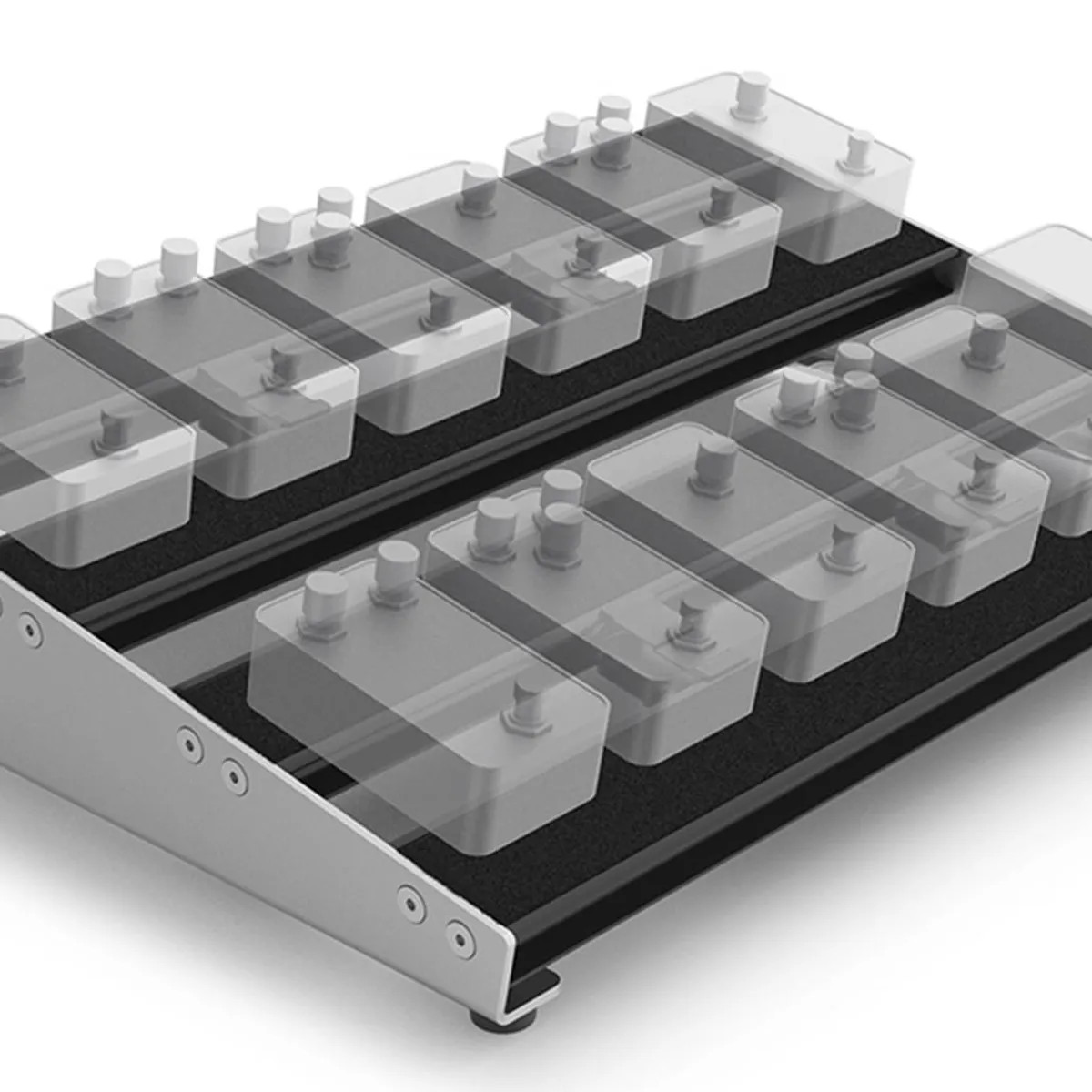 The fixed double-row configuration eliminates moving parts and adjustment mechanisms, creating an incredibly stable platform for your effects. This rigid construction ensures your pedals stay exactly where you place them, even through aggressive stage use and frequent transportation.