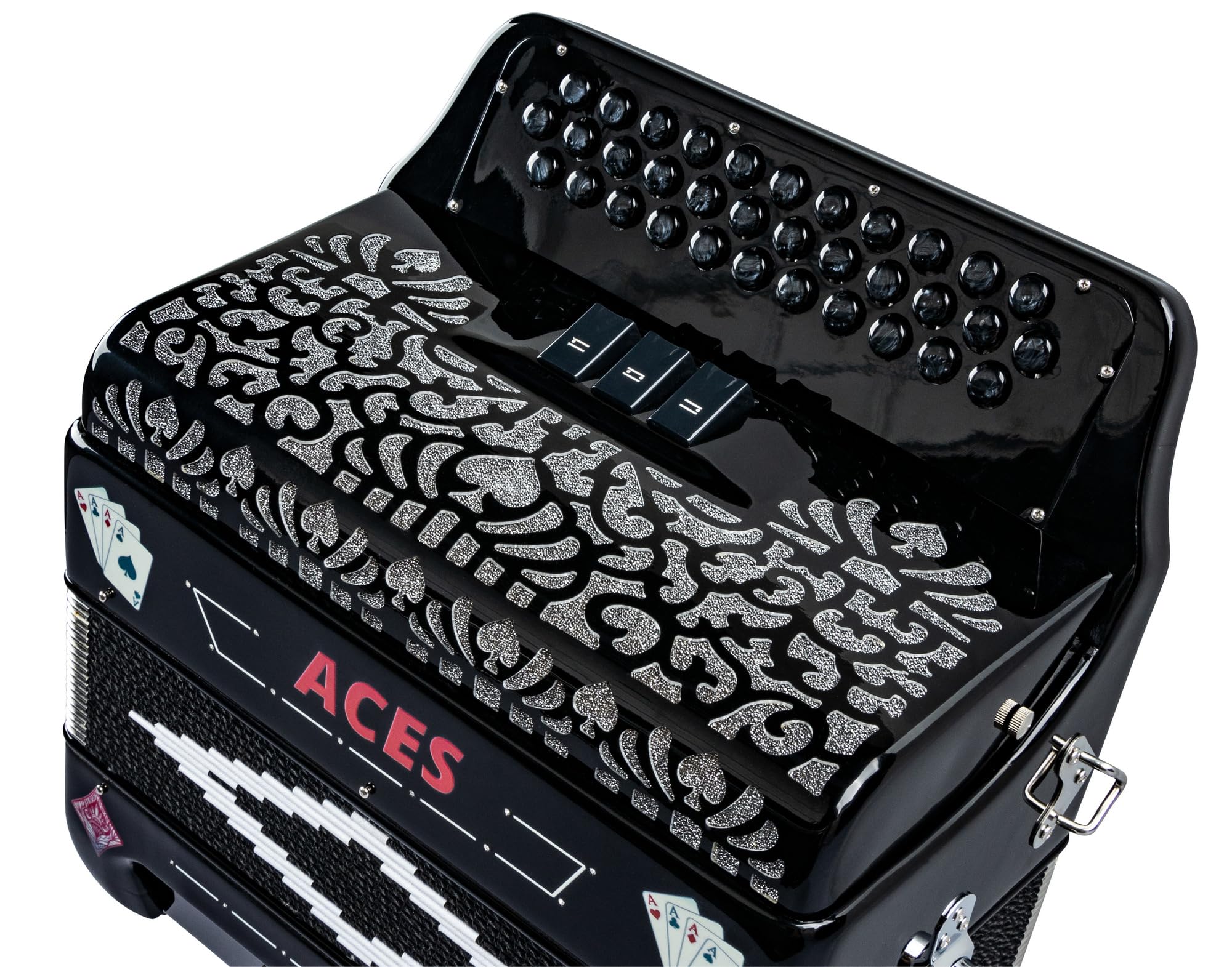 The Hohnica Aces II features a 34-button treble system that provides extensive melodic range and complexity for sophisticated musical passages. The GCF tuning makes this accordion ideally suited for Tex-Mex, Norteño, conjunto, and other traditional Latin American music styles, while remaining versatile enough for folk, country, and contemporary genres. The basswood construction delivers warm, resonant tone while keeping the instrument's weight manageable at 12 pounds, reducing fatigue during extended playing sessions.