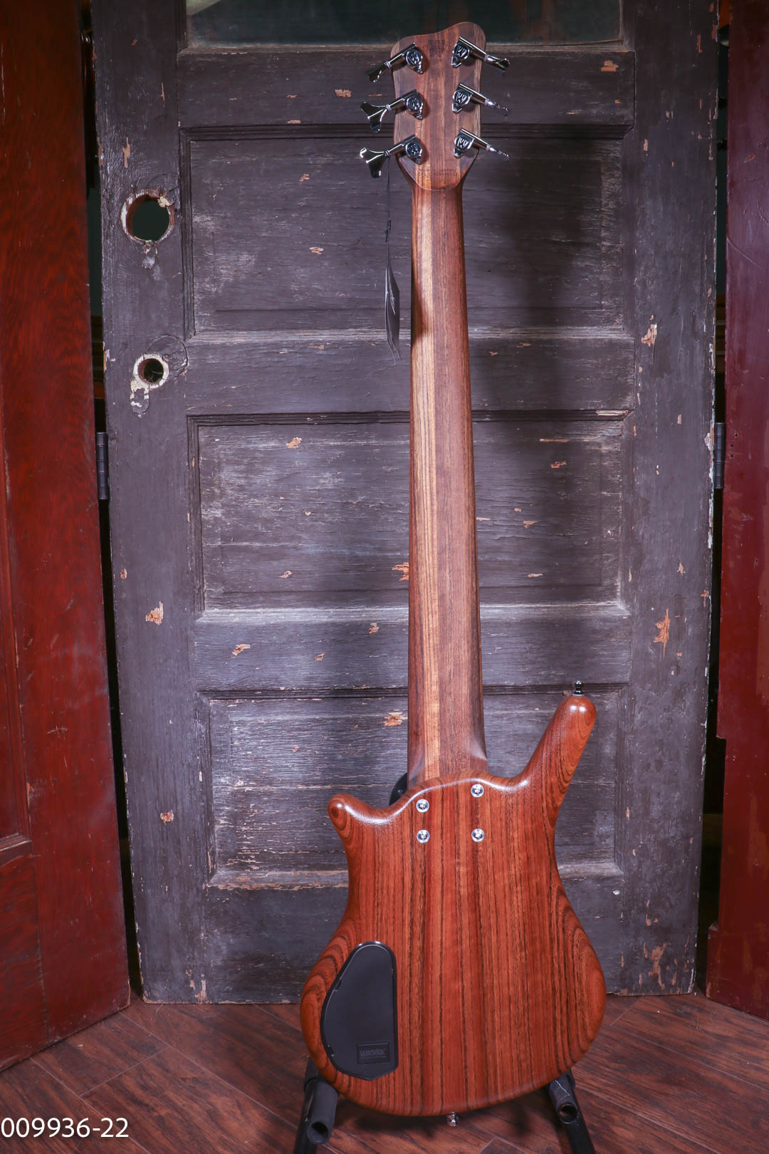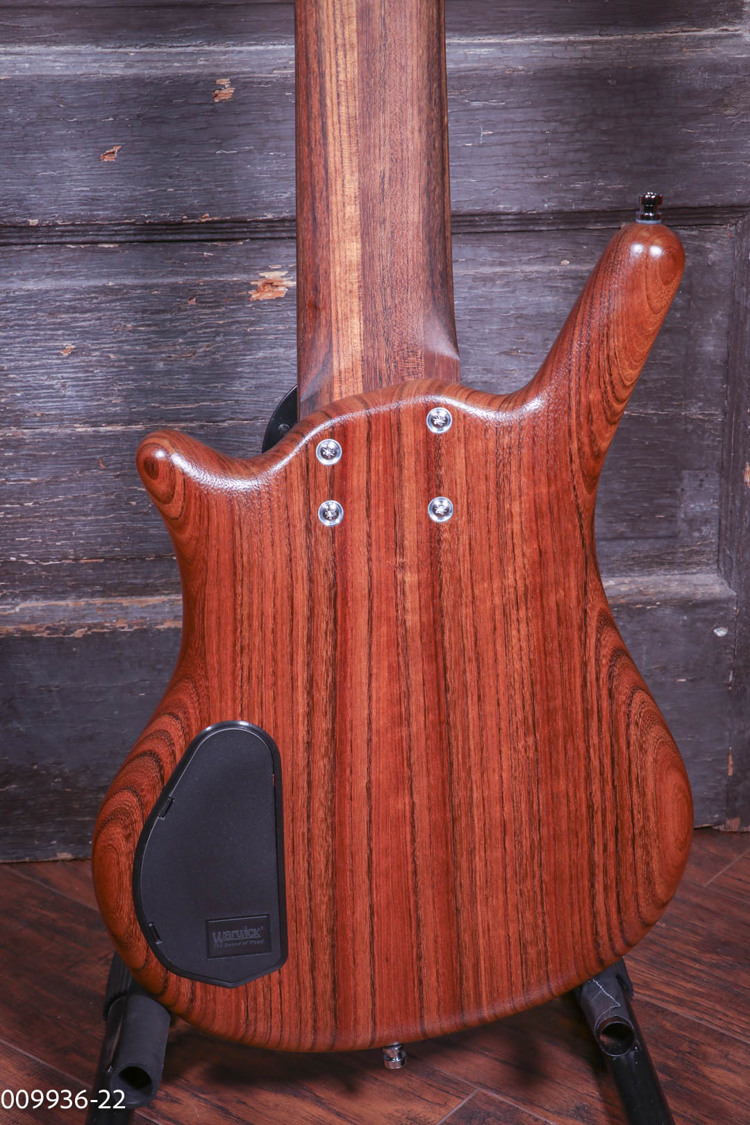 First introduced in 1985, the Warwick Thumb has been a leader in boutique-style professional basses for nearly 4 decades. Sleek curves, incredible tone and feel, and like all Warwick basses a huge variety of points to dial in a setup just how you like it. Suited for any style of music from funk to jazz to metal, the Thumb is a must have bass for any gigging / professional bassist. The natural satin finish on this model really makes the rich wood grain of the ovangkol body shine!